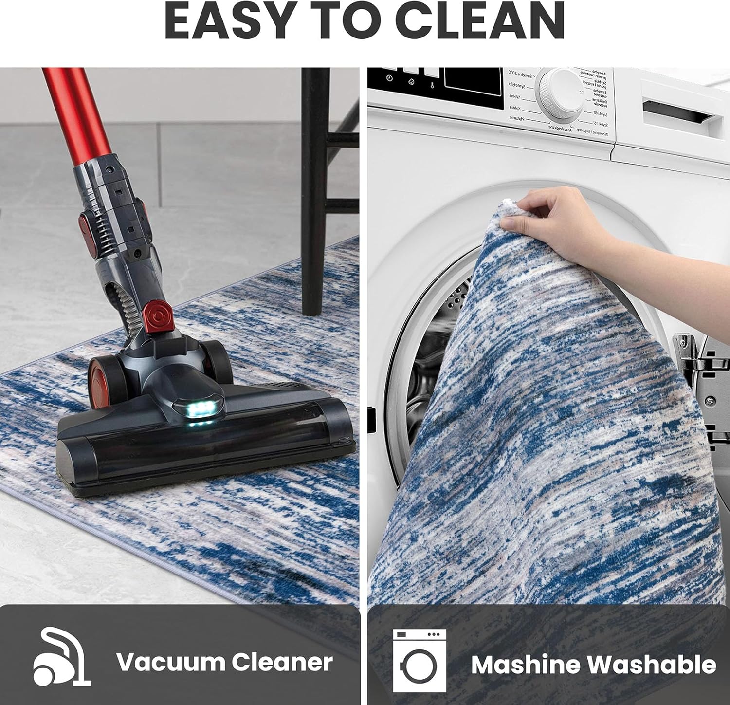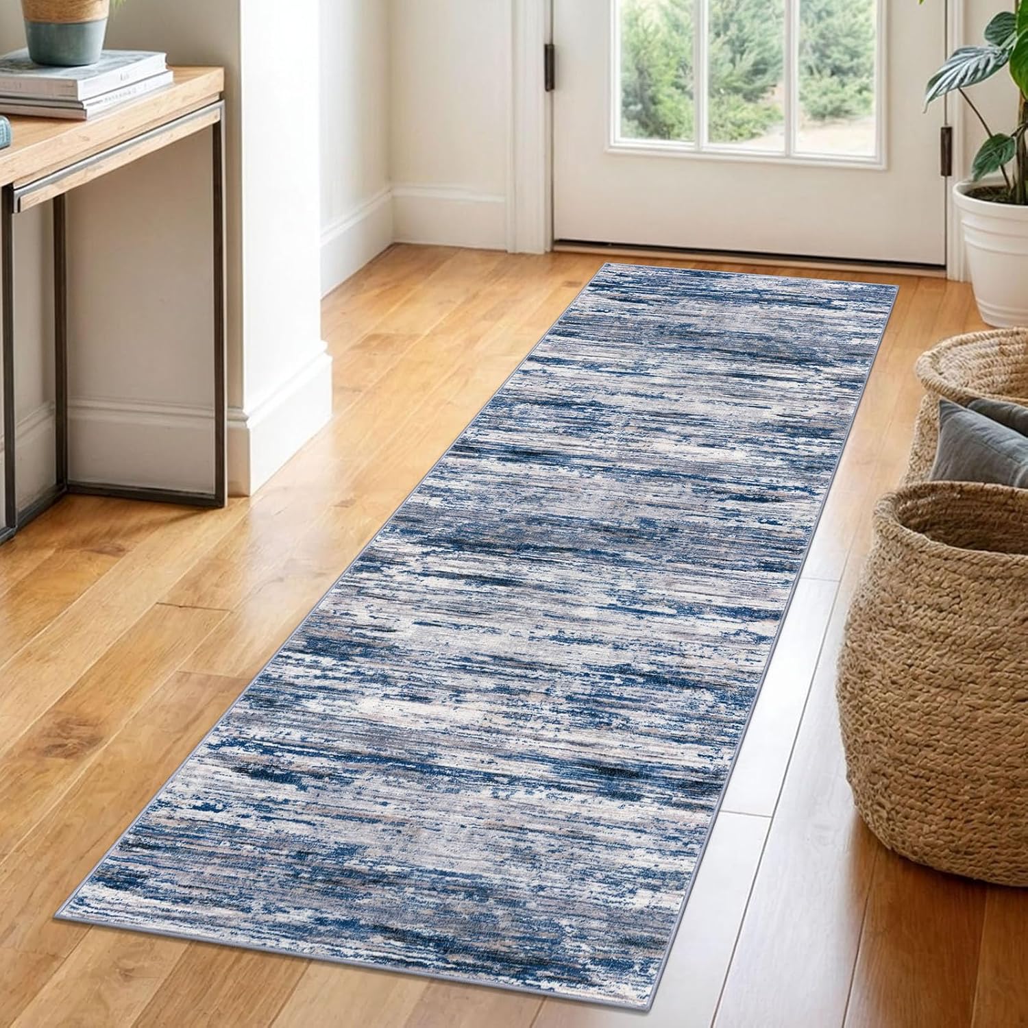 2×6 Navy Blue Gray Neutral Multi Modern Abstract Runner Rug for Hallways, Super Soft Hallway Decor Kitchen Rugs with Non-Slip, Non-Shedding Washable Rug for Entryway Bedroom Indoor
